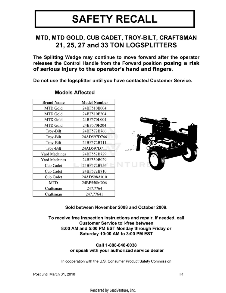 Product Name: Mtd gold log splitter clearance