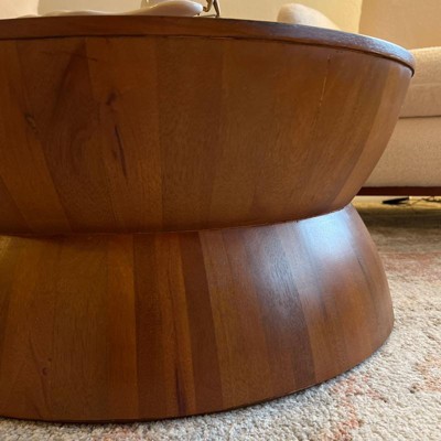 Product Name: Prisma round natural wood turned drum coffee table brown clearance