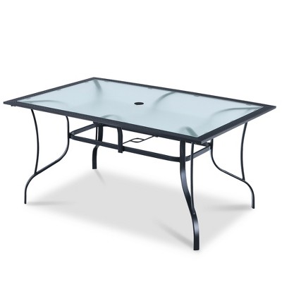 Product Name: Hampton bay mix and match steel folding glass outdoor patio dining table clearance