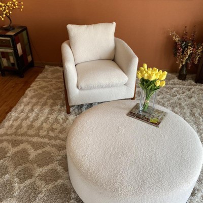 Product Name: Elroy sherpa round ottoman with wood legs cream clearance