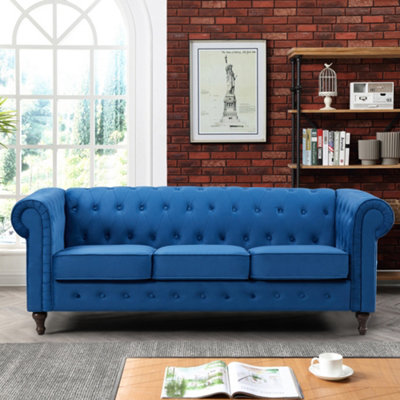 Product Name: Blue fabric chesterfield sofa clearance